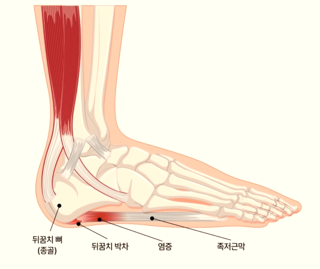 | 주요 원인 | 족저근막염 (80%), 발가락 관절염, 신경 압박, 발목 불안정 |